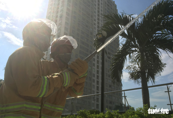 Bộ công an kiểm tra phòng cháy chữa cháy chung cư ở Sài Gòn